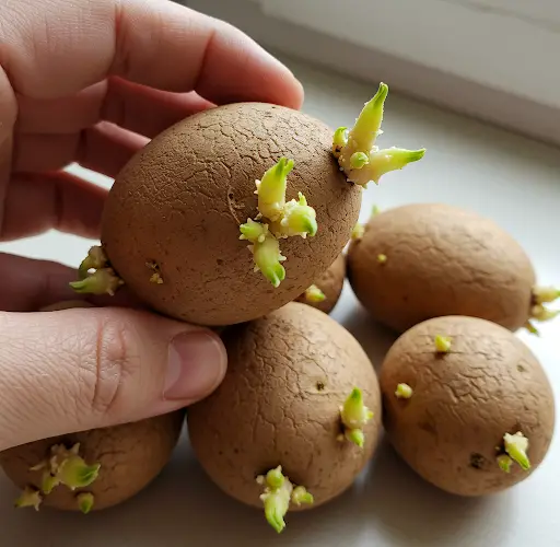 - Plantar papas germinadas: Si tienes demasiadas papas germinadas, puedes plantar los brotes. Prepara una maceta con tierra, coloca la papa con los brotes hacia arriba (sin enterrarla demasiado), riega ligeramente y ponla en un lugar soleado. Al año siguiente, ¡podrás cosechar tus propias papas!