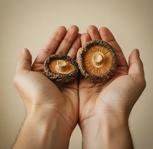 Los hongos shiitake secos de buena calidad deben ser secos y crujientes, pero no quebradizos. Aunque pueda parecer contradictorio, esto significa que son secos pero no se desmoronan al tocarlos. Tienen una textura mejor, y al presionarlos no se rompen fácilmente. Si los hongos están demasiado húmedos, se sentirán blandos y tendrán un alto contenido de agua. Esto no solo es un problema de calidad, sino que también afectará el sabor y hará que los hongos se deterioren más rápido. Además, si los comparas con los hongos secos que encuentras en los supermercados, notarás que pesarán más, lo que significa que estás pagando más por un producto inferior, lo que representa una mala inversión.