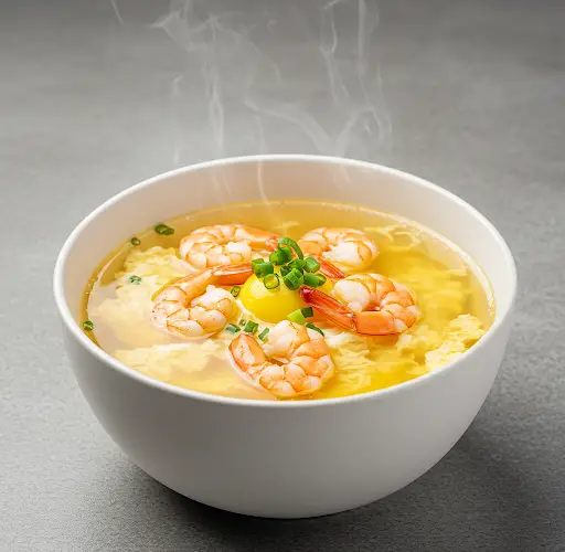 Los nutrientes de los huevos son fácilmente absorbidos por el cuerpo humano a través de la cocción al vapor. Cuando se combinan con los camarones, cuya carne es suave y rica en calcio y proteínas, los dos ingredientes se complementan perfectamente. Este platillo es una excelente fuente de proteína y tiene un alto valor nutricional. Es ideal como desayuno o para cualquier comida del día.